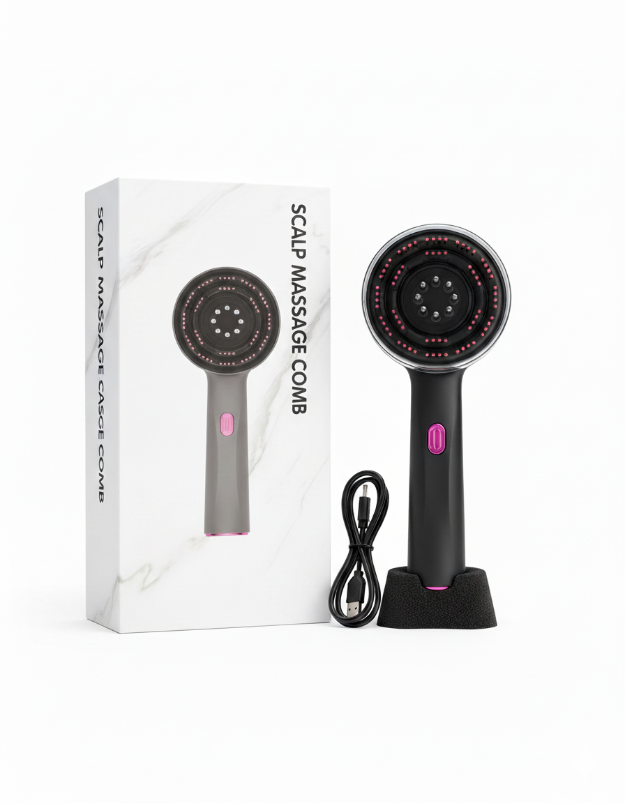 The MERALL Scalp Revitalizing Comb is an innovative hair care device that combines red-light therapy, gentle vibration massage, and oil infusion technology to promote hair growth and scalp health.